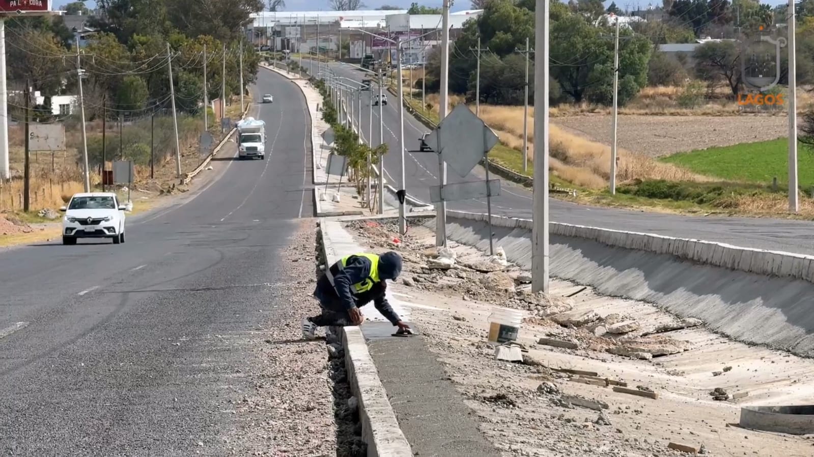 Como parte de las acciones para mejorar la movilidad y el orden urbano en el municipio, el Gobierno Municipal de Lagos de Moreno, encabezado por el Presidente Municipal, el Maestro Edgar González, realizó trabajos de colado de machuelos en la carretera Lagos–San Juan.