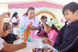 Por su parte, el Sistema DIF Municipal participó activamente mediante la implementación de una ludoteca en un preescolar de la comunidad, generando espacios de aprendizaje y recreación para niñas y niños. Además, se realizó la entrega de despensas a personas en situación de vulnerabilidad, así como la entrega de tenis, apoyos que contribuyen directamente al bienestar de las familias.