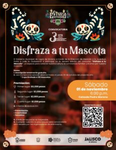 El Gobierno Municipal de Lagos de Moreno, a través de la Dirección de Atención a la Juventud, convoca a la ciudadanía a participar en la tercera edición del concurso “Disfraza a tu Mascota”, un evento que busca promover la convivencia familiar, el respeto hacia los animales y el fomento de la creatividad entre los habitantes del municipio.