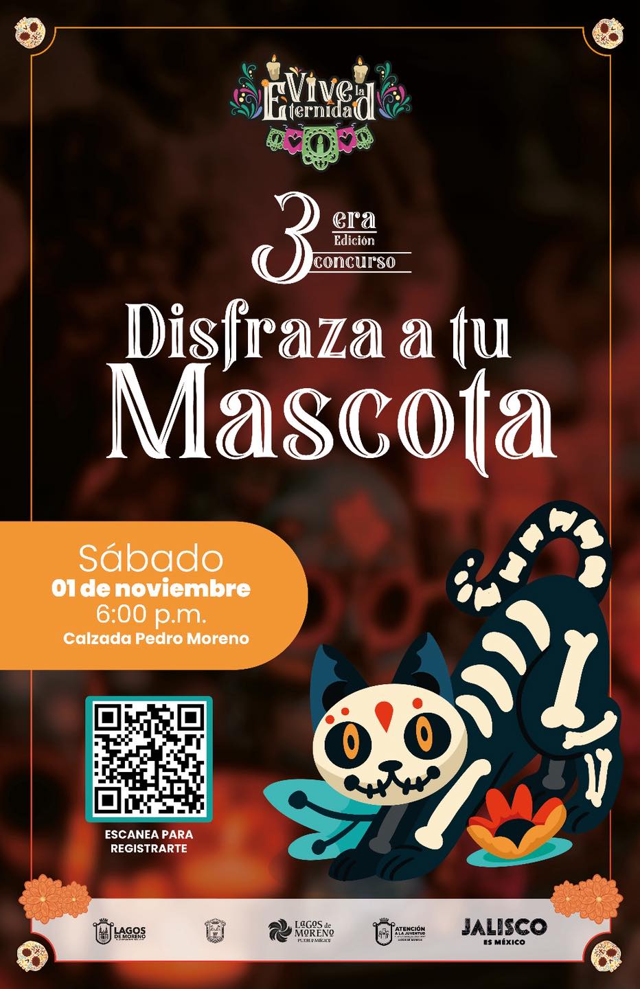 El concurso se realizará el sábado 01 de noviembre, a las 18:00 horas, en la Calzada Pedro Moreno. La actividad está dirigida a personas de todas las edades que deseen compartir un momento de alegría y esparcimiento junto a sus mascotas, en un ambiente que celebra el cariño por los animales y la identidad cultural local.
