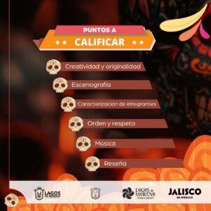 El H. Ayuntamiento de Lagos de Moreno 2024-2027, a través de la Dirección de Educación, invita cordialmente a las instituciones educativas de nivel medio superior y superior, asociaciones charras, agrupaciones culturales, así como a empresas y negocios locales, a participar en el tradicional Desfile de Día de Muertos “Tradición que Camina” – Edición 2025, una celebración que busca preservar y promover nuestras raíces y costumbres mexicanas.