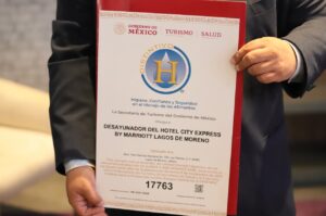 El Gobierno Municipal de Lagos de Moreno realizó la entrega del Distintivo H al Hotel City Express, un reconocimiento que certifica las buenas prácticas de higiene en el manejo de alimentos y bebidas, contribuyendo así a garantizar la seguridad y salud de los consumidores.