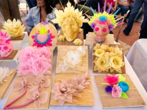 Durante el recorrido, se instalaron diversos stands con productos elaborados por las y los integrantes de los Grupos de Desarrollo Comunitario, tales como tortillas hechas a mano, arte en cera, costura, panadería, velas y productos de limpieza, entre otros. Cada exposición reflejó el esfuerzo, la creatividad y el espíritu emprendedor de las familias laguenses.