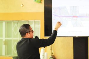 El Presidente Municipal, Mtro. Edgar González, encabezó hoy una mesa de trabajo con integrantes de la Red de Carreteras de Occidente (RCO), responsables de la ampliación a cuatro carriles del Libramiento Norte, y con las y los vecinos del Pueblo Indígena de La Laguna, escuchando de manera directa sus opiniones, inquietudes y propuestas sobre este proyecto tan importante para el municipio.