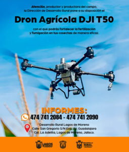 La incorporación del dron agrícola DJI T50 marca un avance significativo hacia una agricultura más eficiente, segura y sostenible, en beneficio de toda la comunidad de Lagos de Moreno.