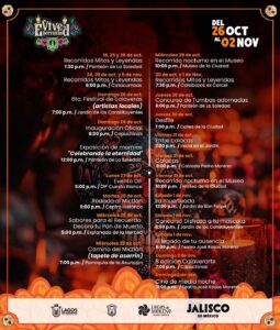 Durante esta semana, Lagos de Moreno se llenará de arte, cultura y tradición con una variada programación de actividades pensadas para toda la familia, entre las que destacan: obras de teatro, altares monumentales, recorridos históricos, desfiles, pasarelas y expresiones artísticas que honran la memoria de nuestros seres queridos.